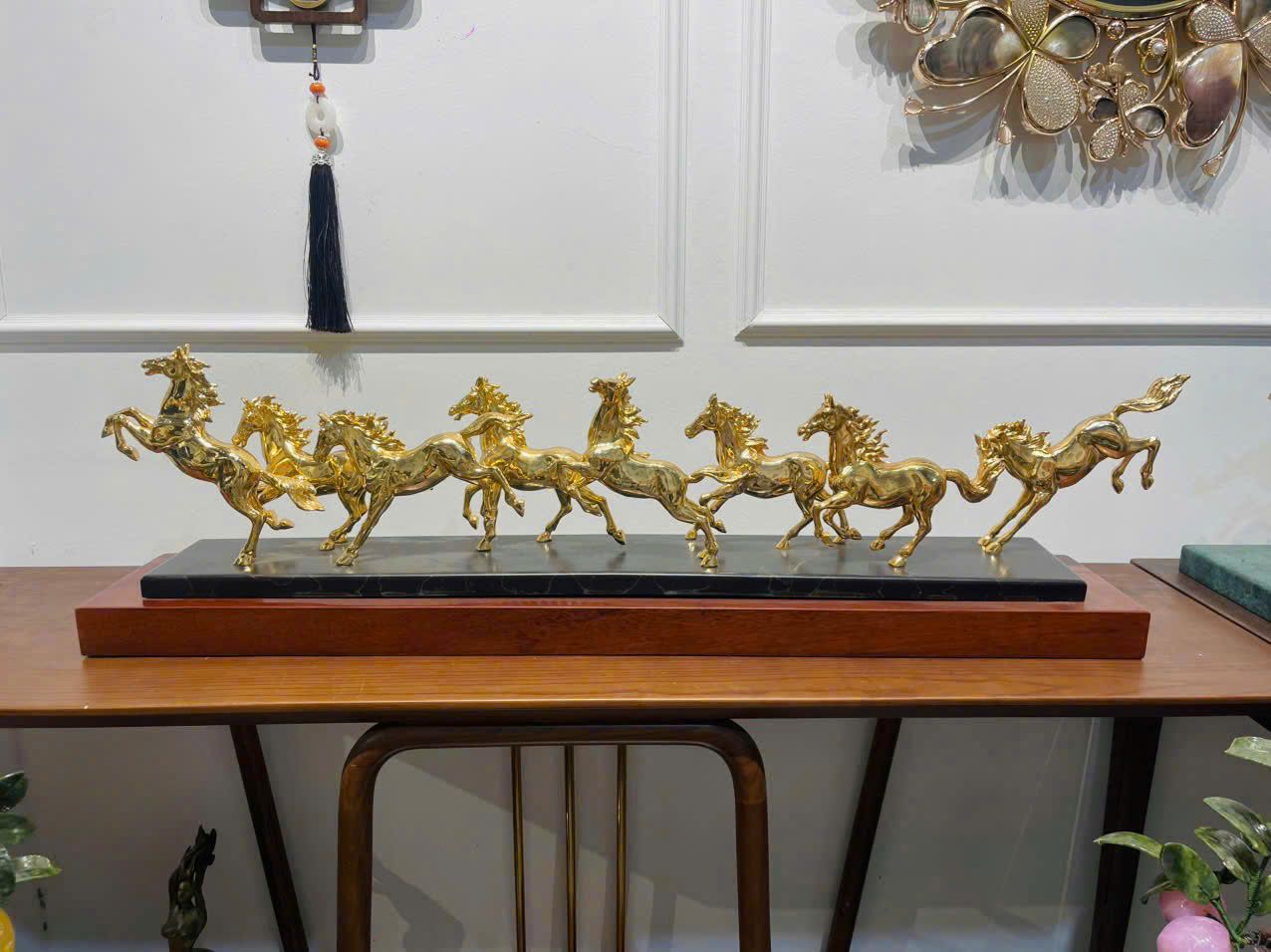 Tuyệt phẩm tượng Bát Mã truy phong dài 1m mạ vàng 24K từ King Gold Art. Vật phẩm phong thủy đẳng cấp cho phòng khách, phòng làm việc, mang lại may mắn...