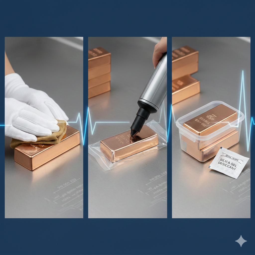 Bí quyết bảo quản đồng thỏi 1kg tại gia luôn sáng bóng như mới. Cách chống oxy hóa cho đồng thỏi tích trữ từ chuyên gia King Gold Art. Xem ngay mẹo...