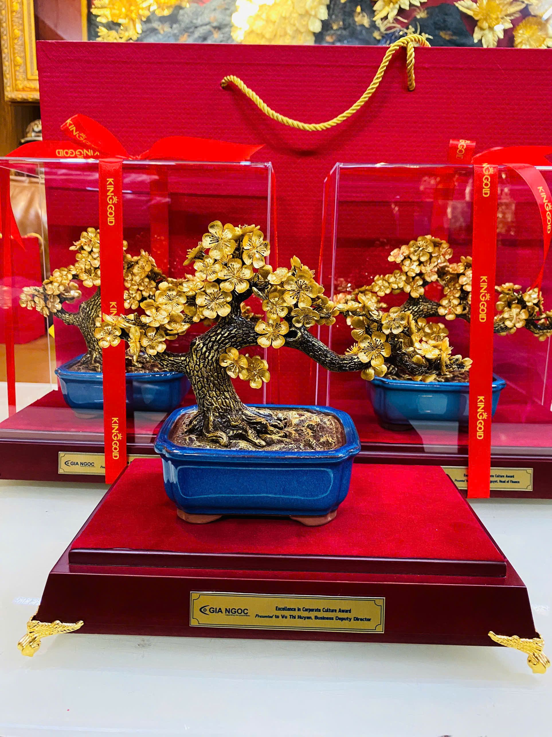 Chậu Mai Vàng phong thủy dát vàng 24K độc bản tại King Gold Art. Món quà Tết Bính Ngọ 2026 sang trọng, tượng trưng cho phú quý, bình an và sự khởi đầu...