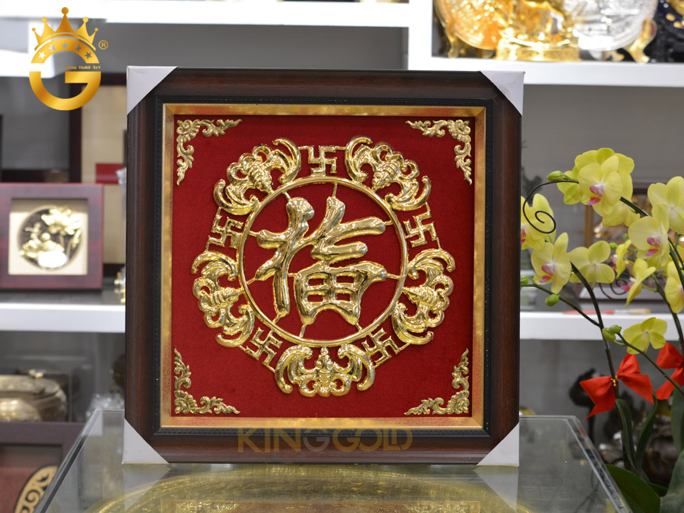 Tranh chữ Phúc mạ vàng được thúc chạm thủ công hoàn toàn bằng tay bởi các nghệ nhân chạm tranh. Quá trình chạm tranh được thực hiện trực tiếp tại xưởng sản xuất của King Gold.