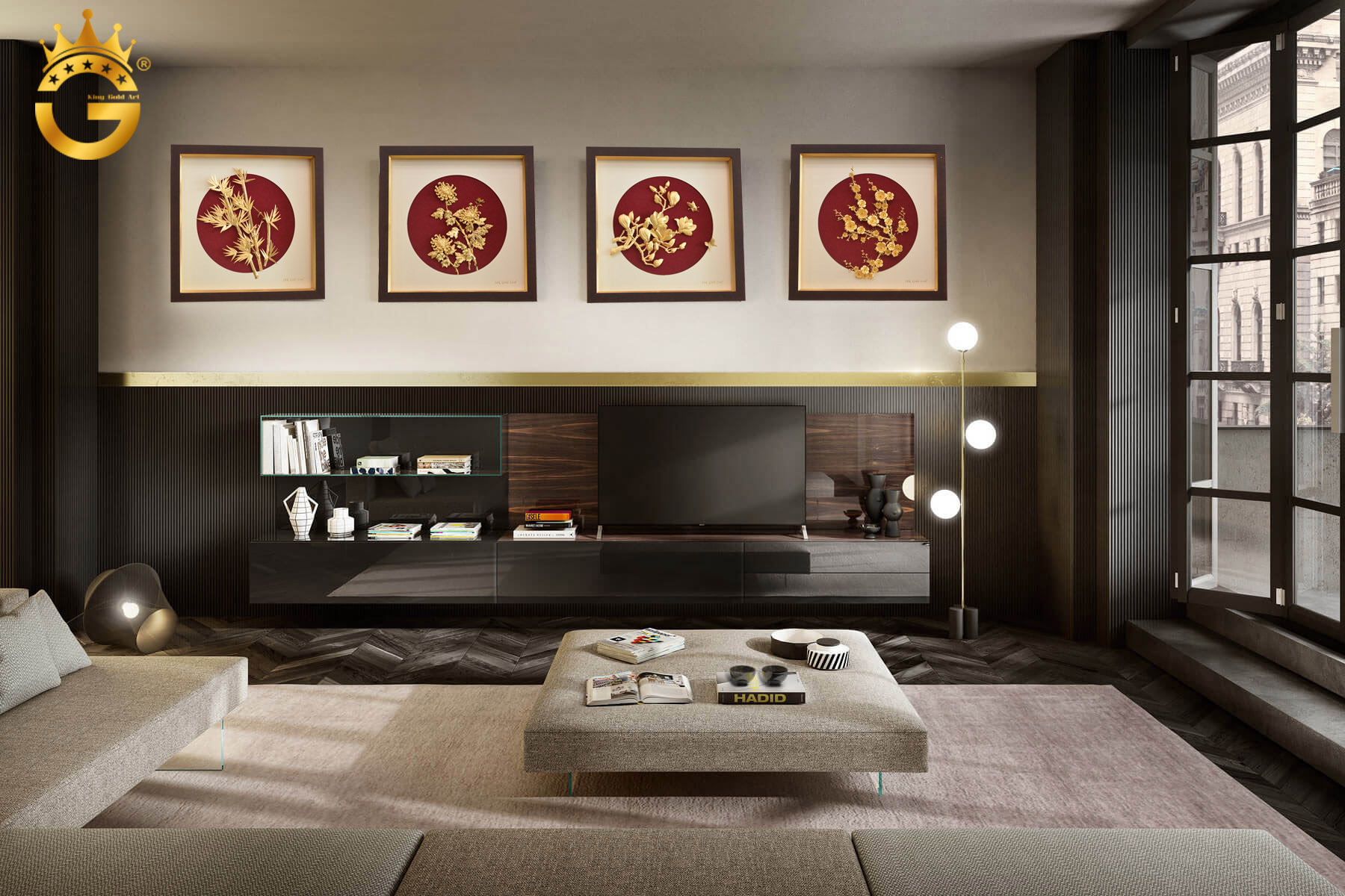 Bộ tranh tứ quý Mai Lan Cúc Trúc bằng vàng lá 24k- kiệt tác trang trí nội thất hiện đại