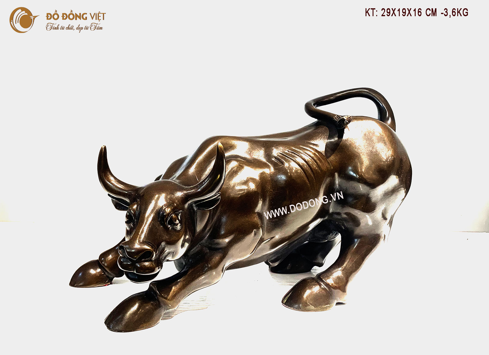 Tượng bò phố wall được đúc đồng nguyên khối, trọng lượng 3,6kg màu đồng vẽ màu đá sang trọng và phù hợp với mệnh nhiều doanh nhân