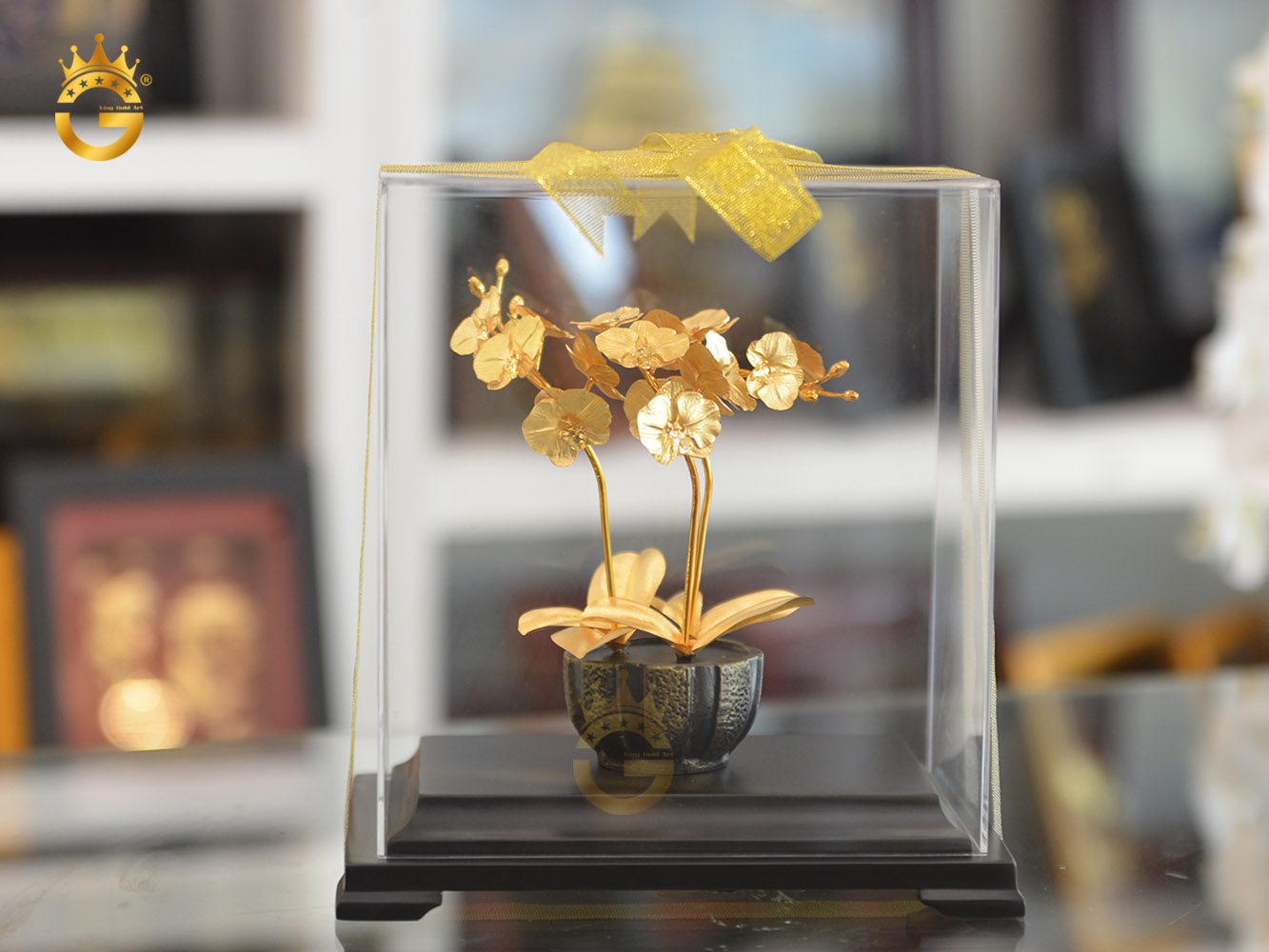 Chậu hoa lan mạ vàng 24k đẹp tinh xảo