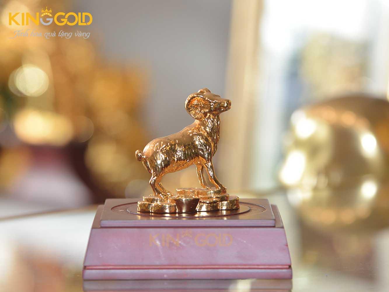 Chú dê xuất hiện với thân hình mập mạp, béo tốt. Các chi tiết từ bộ lông, chiếc đuôi, cặp sừng đến đôi mắt đều được khắc họa hết sức sống động, chân thực. Chú dê đứng trên một phiến đá nhỏ, dưới chân có rất nhiều đồng tiền. Như vậy, tượng dê phong thủy ở đây hướng về công năng tài lộc, ngụ ý của cải chất đầy.