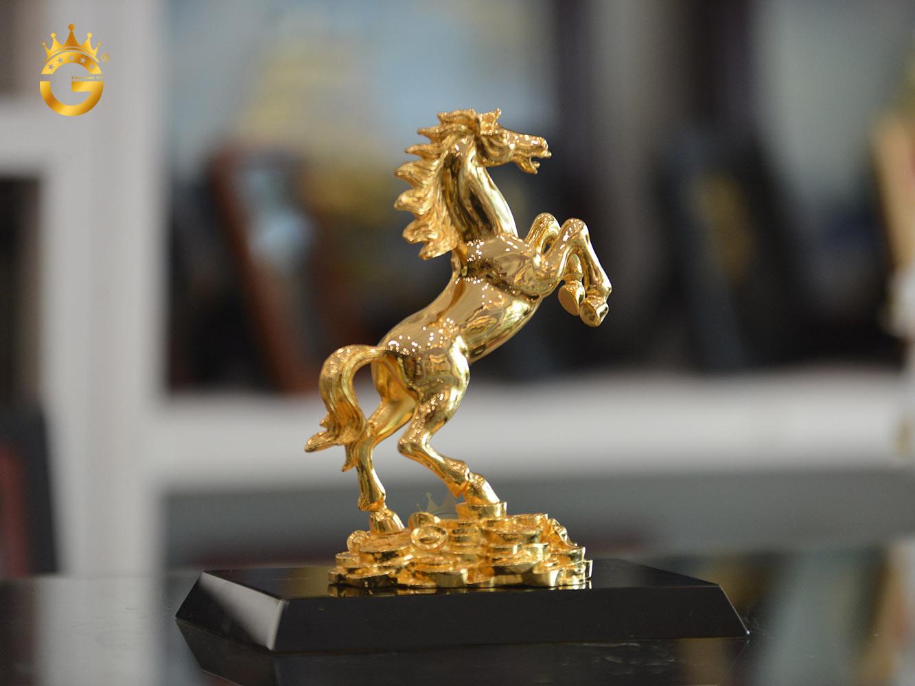 Khi đặt tượng con ngựa mạ vàng 24k trên bàn làm việc hay trong phòng làm việc sẽ giúp công việc suôn sẻ, thuận lợi, phát triển, điều hòa các mối quan hệ làm ăn, công việc, từ đó, gia chủ sẽ sớm đạt được thành công trong sự nghiệp một cách tốt đẹp.